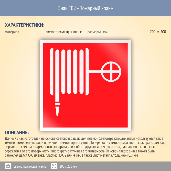 Знак F02 «Пожарный кран» (светоотражающая пленка, 200х200 мм) в Улан-Удэ купить