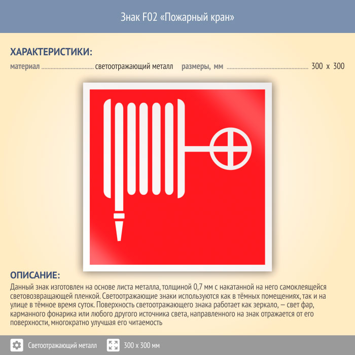 Знак F02 «Пожарный кран» (светоотражающий металл, 300х300 мм) в Улан-Удэ купить