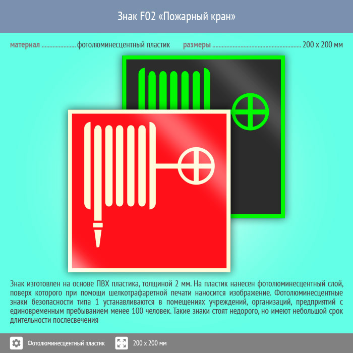 Знак F02 «Пожарный кран» (фотолюминесцентный пластик, 200х200 мм) в Улан-Удэ купить