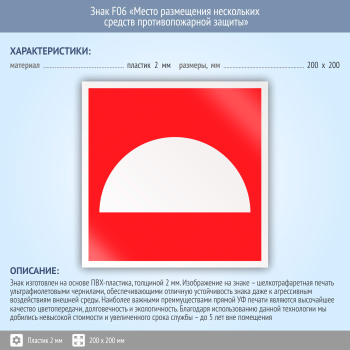 Знак F06 «Место размещения нескольких средств противопожарной защиты» (пластик, 200х200 мм) в Улан-Удэ купить