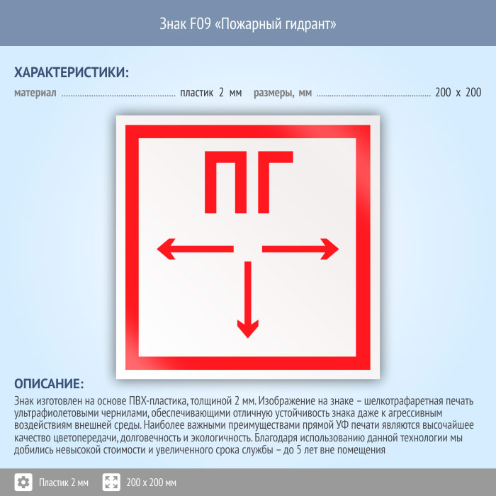 Знак F09 «Пожарный гидрант» (пластик, 200х200 мм) в Улан-Удэ купить
