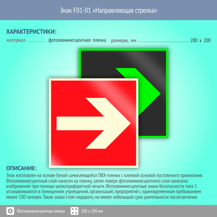 Знак F01-01 «Направляющая стрелка» (фотолюминесцентная пленка, 200х200 мм) в Улан-Удэ купить