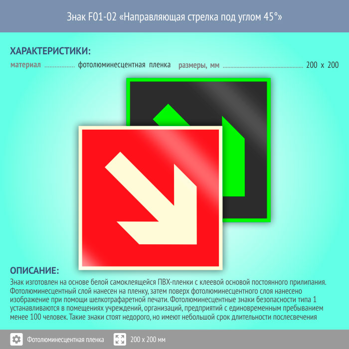 Знак F01-02 «Направляющая стрелка под углом 45°» (фотолюминесцентная пленка, 200х200 мм) в Улан-Удэ купить
