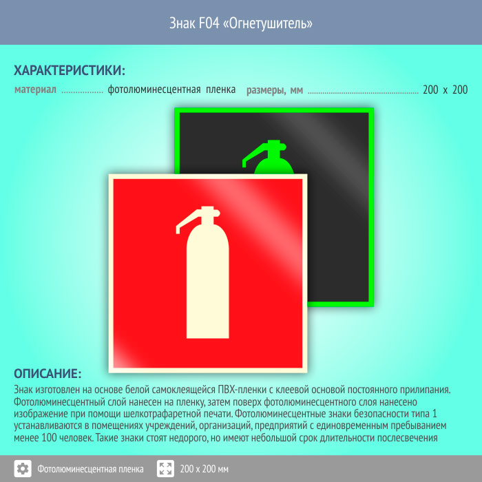 Знак F04 «Огнетушитель» (фотолюминесцентная пленка, 200х200 мм) в Улан-Удэ купить