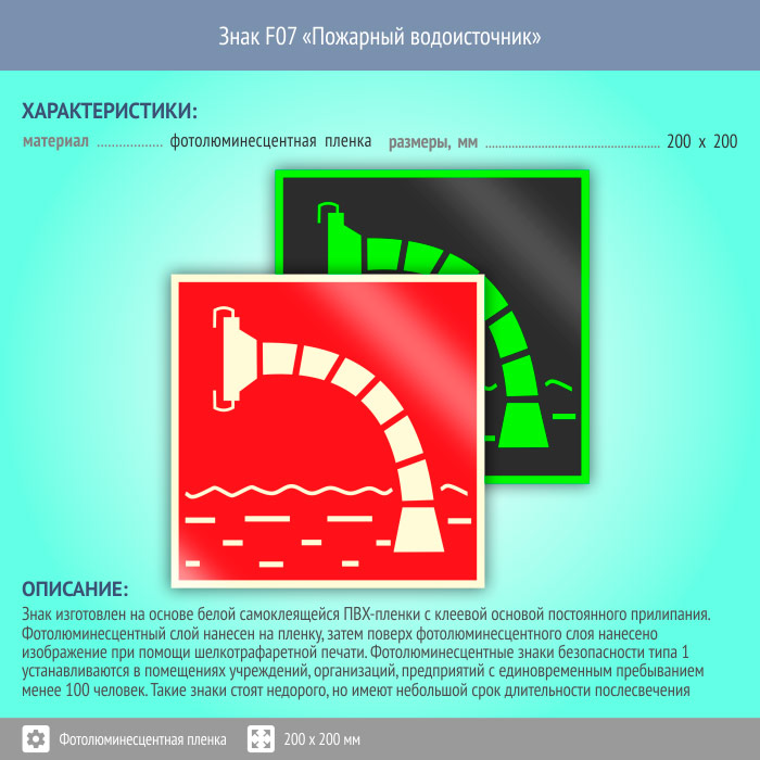 Знак F07 «Пожарный водоисточник» (фотолюминесцентная пленка, 200х200 мм) в Улан-Удэ купить