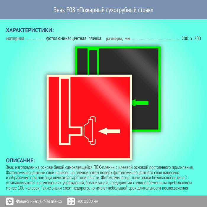 Знак F08 «Пожарный сухотрубный стояк» (фотолюминесцентная пленка, 200х200 мм) в Улан-Удэ купить