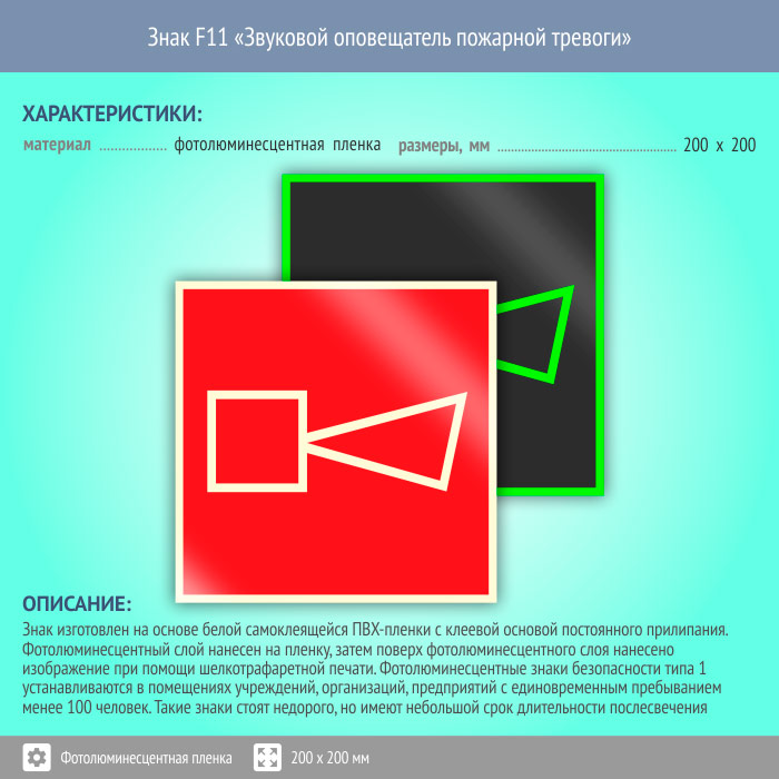 Знак F11 «Звуковой оповещатель пожарной тревоги» (фотолюминесцентная пленка, 200х200 мм) в Улан-Удэ купить