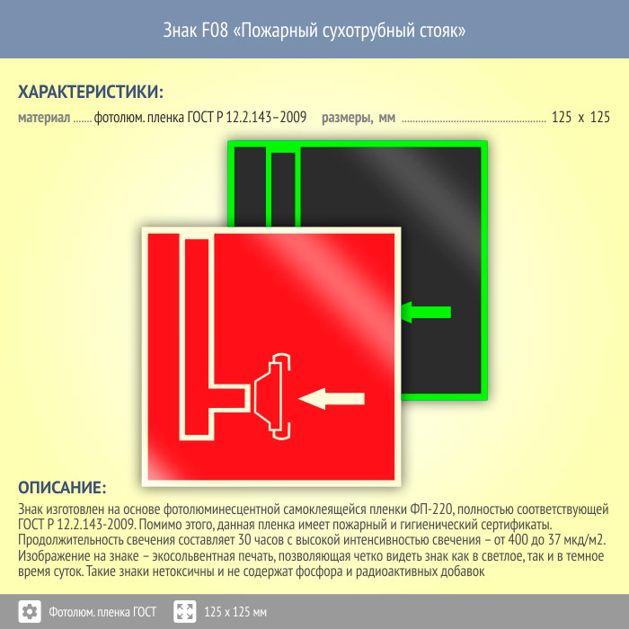 Знак F08 «Пожарный сухотрубный стояк» (фотолюминесцентная пленка ГОСТ 34428-2018, 125х125 мм) в Улан-Удэ купить