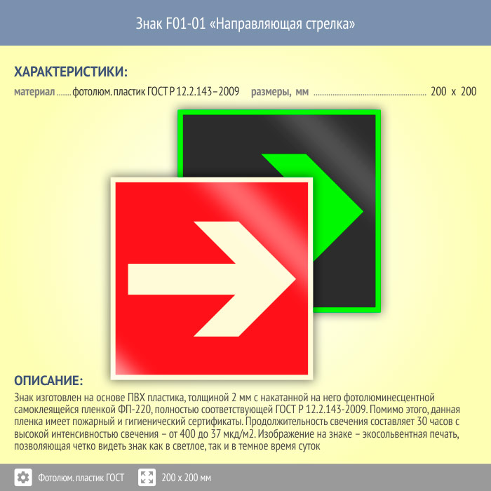 Знак F01-01 «Направляющая стрелка» (фотолюминесцентный пластик ГОСТ 34428-2018, 200х200 мм) в Улан-Удэ купить