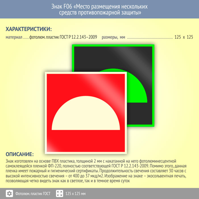 Знак F06 «Место размещения нескольких средств противопожарной защиты» (фотолюминесцентный пластик ГОСТ 34428-2018, 125х125 мм) в Улан-Удэ купить