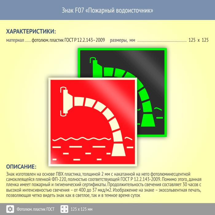 Знак F07 «Пожарный водоисточник» (фотолюминесцентный пластик ГОСТ 34428-2018, 125х125 мм) в Улан-Удэ купить