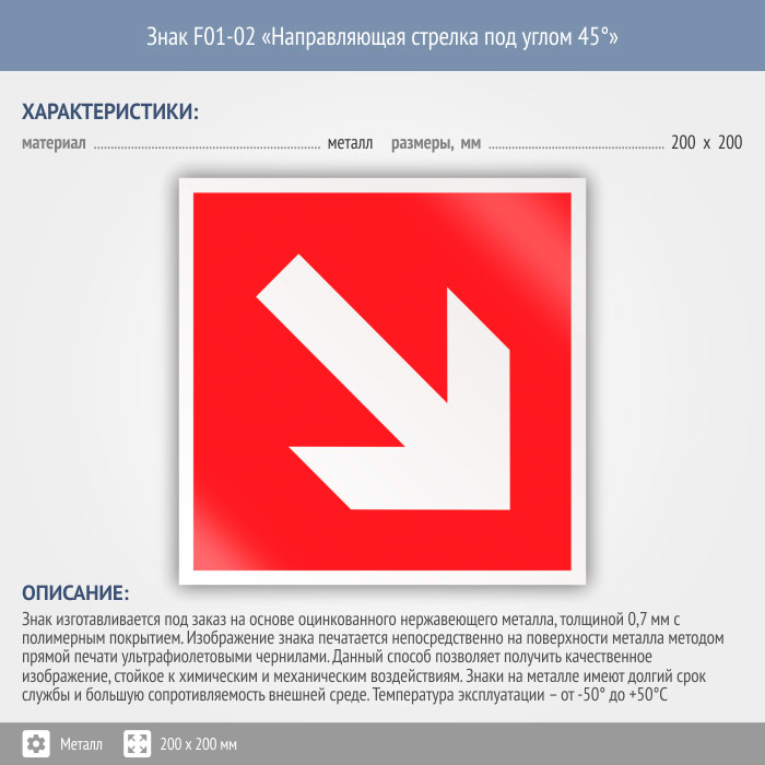 Знак F01-02 «Направляющая стрелка под углом 45°» (металл, 200х200 мм) в Улан-Удэ купить
