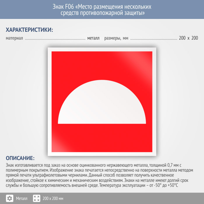 Знак F06 «Место размещения нескольких средств противопожарной защиты» (металл, 200х200 мм) в Улан-Удэ купить