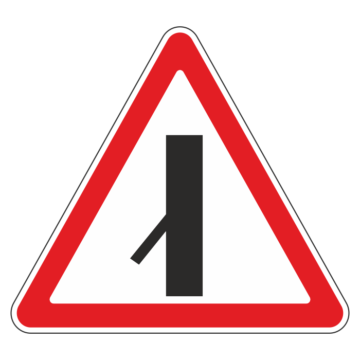 Дорожный знак 2.3.7 «Примыкание второстепенной дороги слева» (металл 0,8 мм, III типоразмер: сторона 1200 мм, С/О пленка: тип А коммерческая) в Улан-Удэ купить