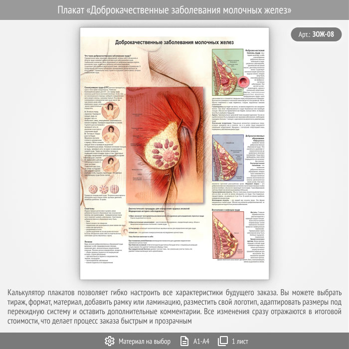 Плакат «Доброкачественные заболевания молочных желез» (ЗОЖ-08, 1 лист) в Улан-Удэ купить