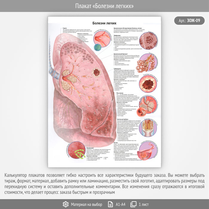 Плакат «Болезни легких» (ЗОЖ-09, 1 лист) в Улан-Удэ купить