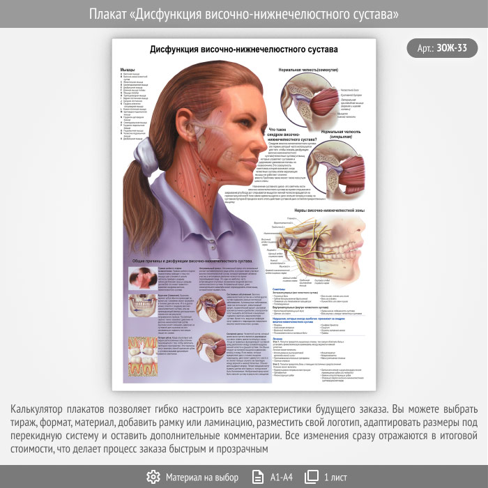 Плакат «Дисфункция височно-нижнечелюстного сустава» (ЗОЖ-33, 1 лист) в Улан-Удэ купить