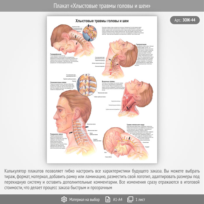 Плакат «Хлыстовые травмы головы и шеи» (ЗОЖ-44, 1 лист) в Улан-Удэ купить